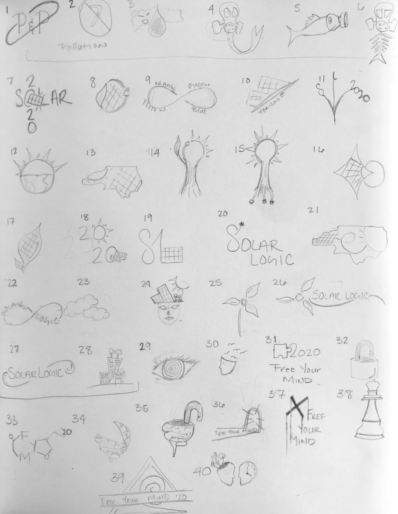 The beginning process of my take on the Think Big Conference in 40 thumbnails. Originally, I was undecided on the topic, so I sketched up ideas on three different topics. I was undecided between water pollution, solar energy, and hypnosis. I had the most concepts for solar energy and during class critique I received the most feedback on the solar energy thumbnails. So I decided to take them further.