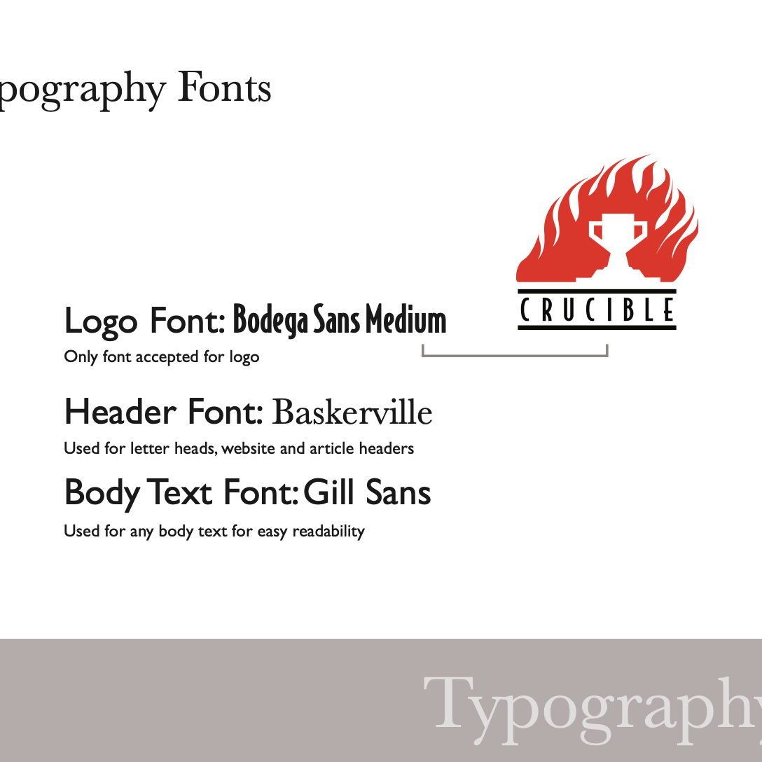 This was my first time attempting and completing a GSM. Where I feel there is room for growth and improvements, I am satisfied with my outcome. For the clothing and swag items I decided to break up the logo for diversity among the pieces. Below I have left a completed PDF of the Crucible GSM