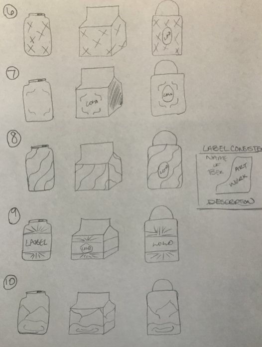After trying each design on my product label I decided to go with the mountain landscape to tie into the products brand identity. Blue Ridge Brewing located in Blowing Rock North Carolina. The blue ripples were interesting but fell flat after looking at it all together.